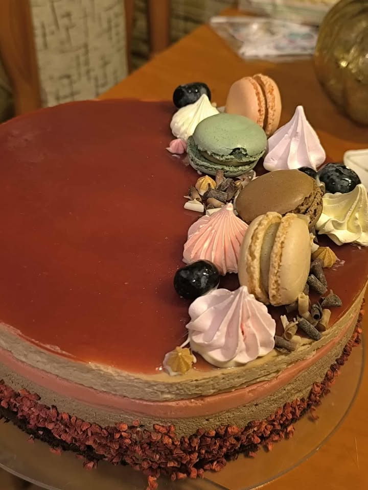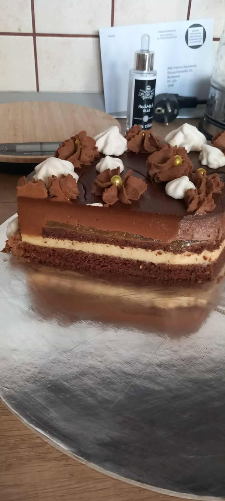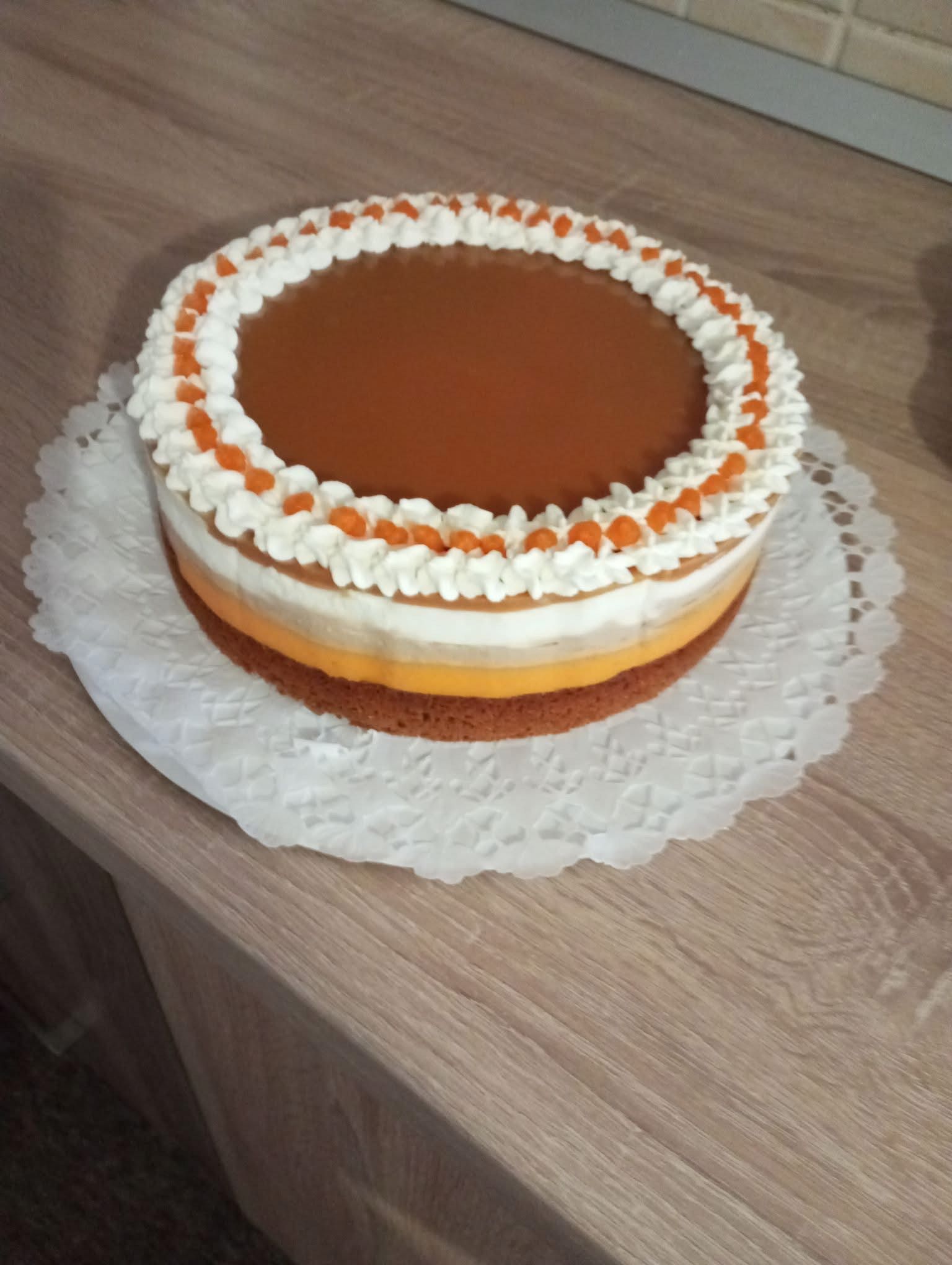 A receptért kattints ide!Zsigóné Tündétől :"Én még nagyon kezdő vagyok....de azért haladok lassan lassan.A díszítés az mondjuk levesz az életről 🤣én nem tudom ezt a habzsákos t szépen megoldani ...😒 Ja....azért világosabb a zselé és a krém mert nem volt itthon csak vegyes gyümölcs"