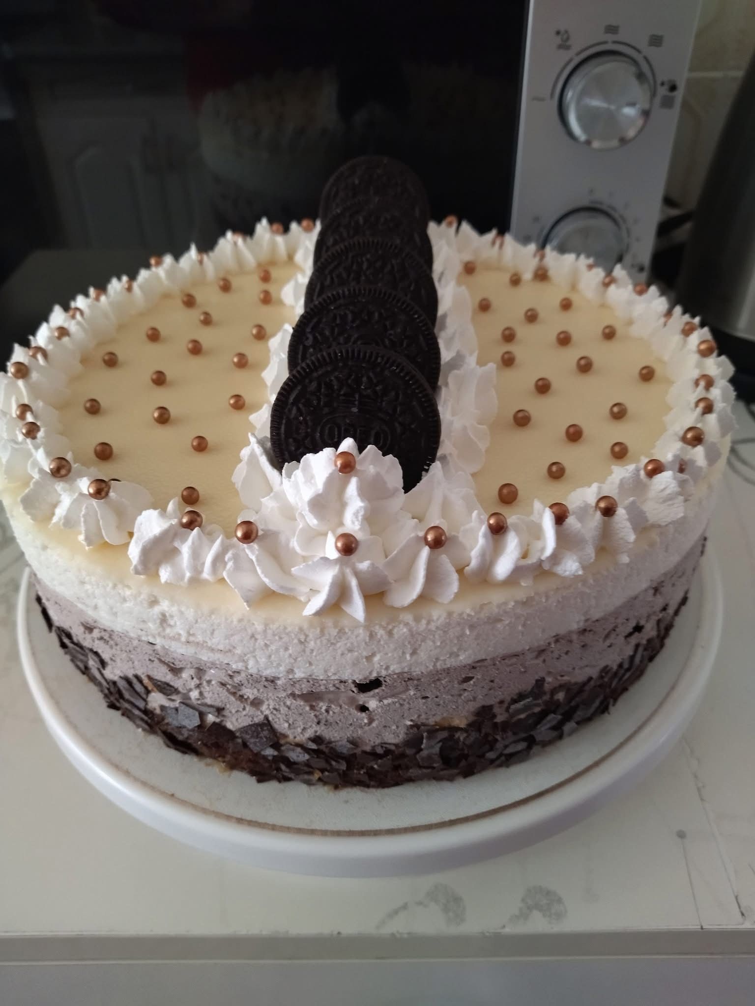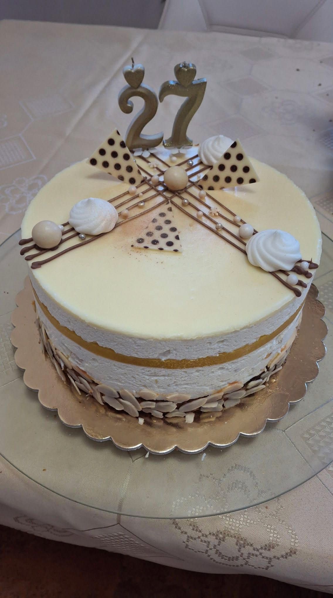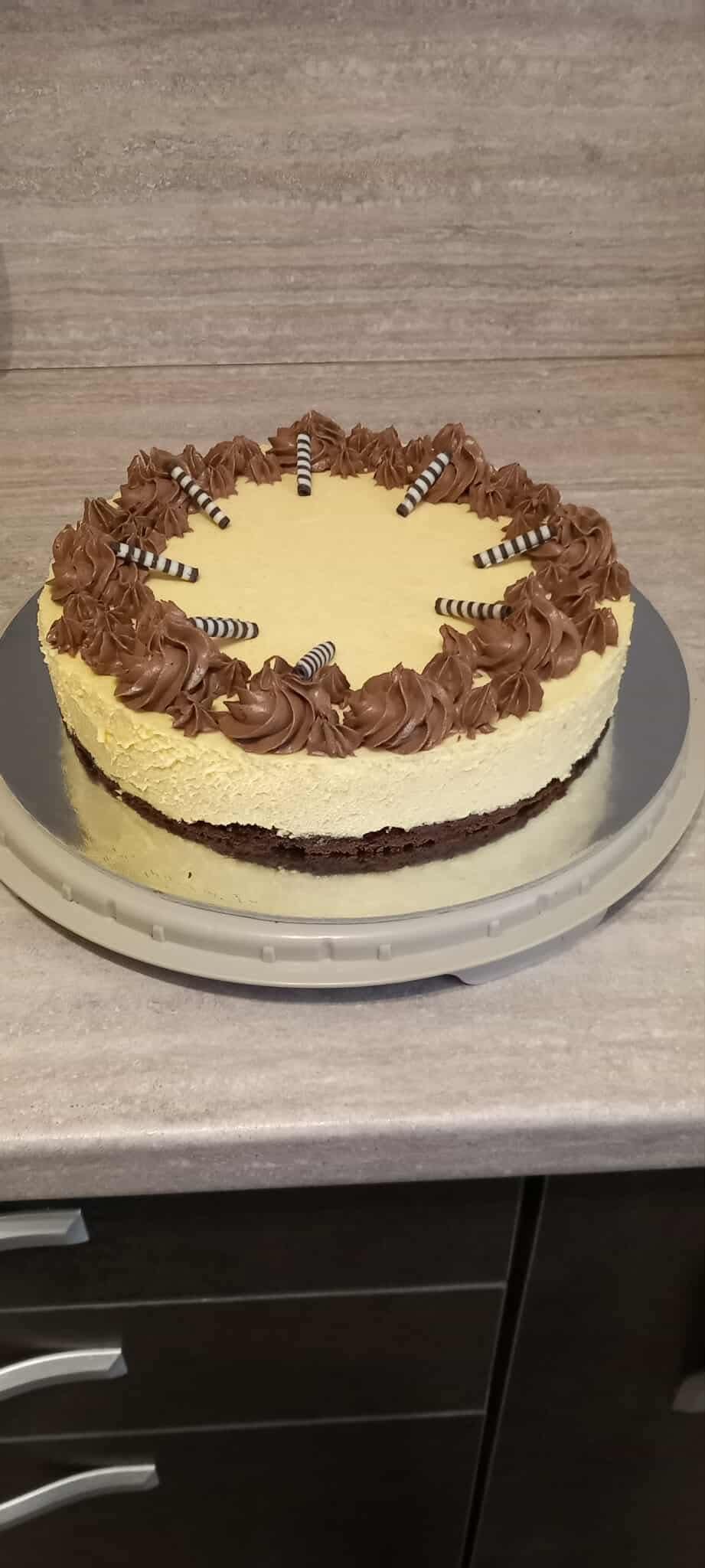 A receptért kattints ide!Zsigóné Tündétől :"Én még nagyon kezdő vagyok....de azért haladok lassan lassan.A díszítés az mondjuk levesz az életről 🤣én nem tudom ezt a habzsákos t szépen megoldani ...😒 Ja....azért világosabb a zselé és a krém mert nem volt itthon csak vegyes gyümölcs"