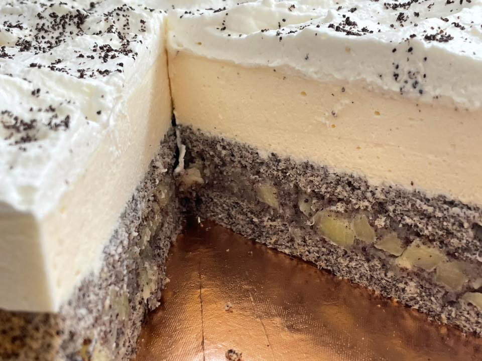 A receptért kattints ide!Gunda Oliviától :"Anyumnak ma van a szülinapja és a mákos piskota-túrókrémmel és kamillás barack zselével -tortát készítettem. Már el is fogyott, isteni volt :)"